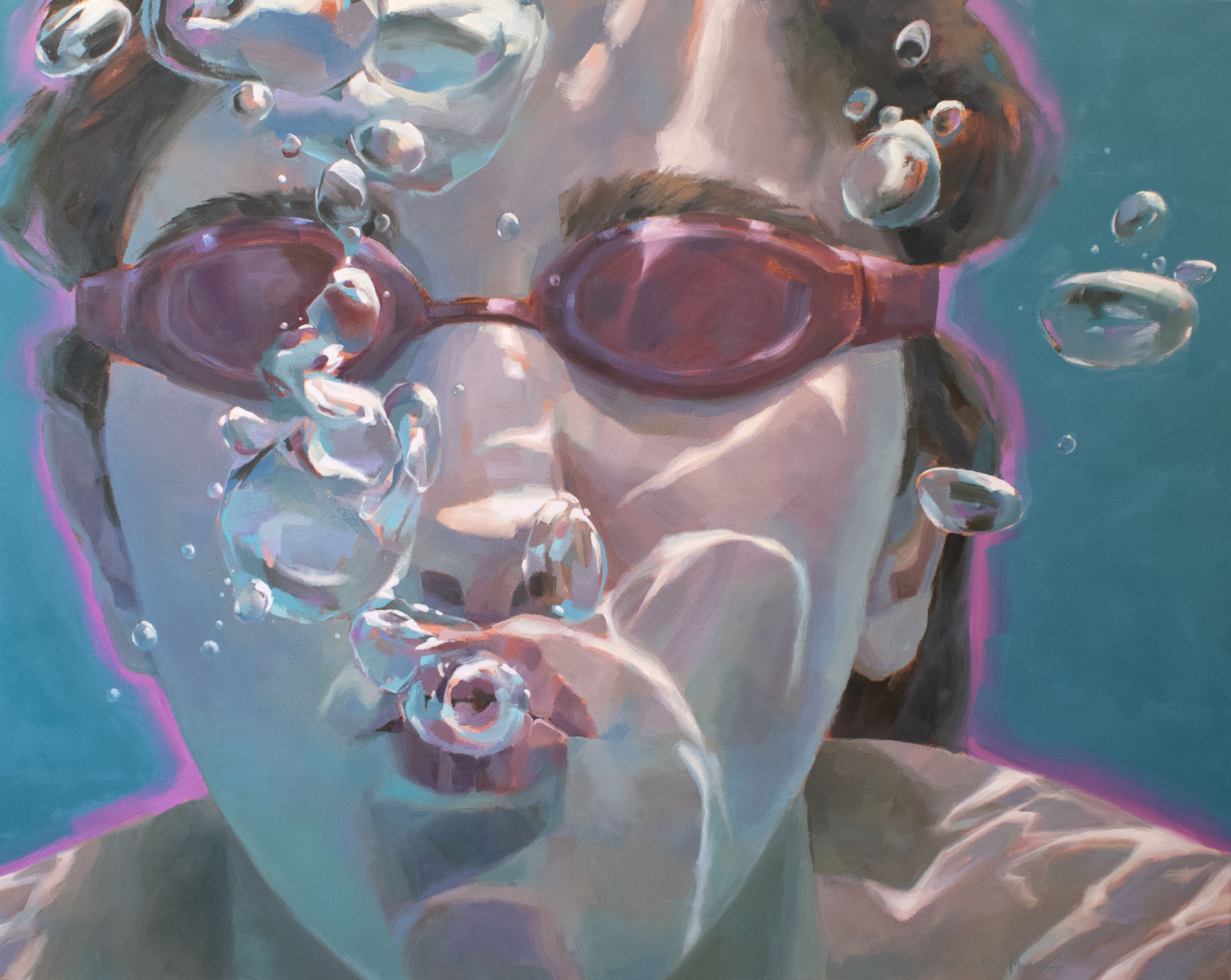 In questi lavori unisco il mio interesse per l’immagine figurativa e per l’astrazione colorata, creando dipinti che catturano la sensazione unica e le associazioni particolari del corpo sospeso nell’acqua e nel tempo. Questa serie, che chiamo Fractured Light, mi permette di dipingere ciò che amo — la figura — mentre esploro le zone di distorsione fluida che si formano naturalmente nell’acqua turbolenta e inondata di sole.